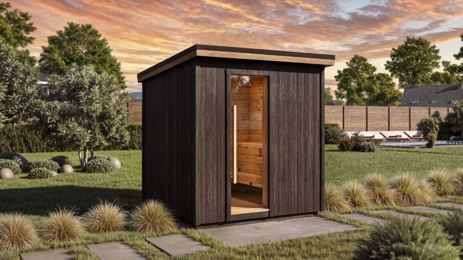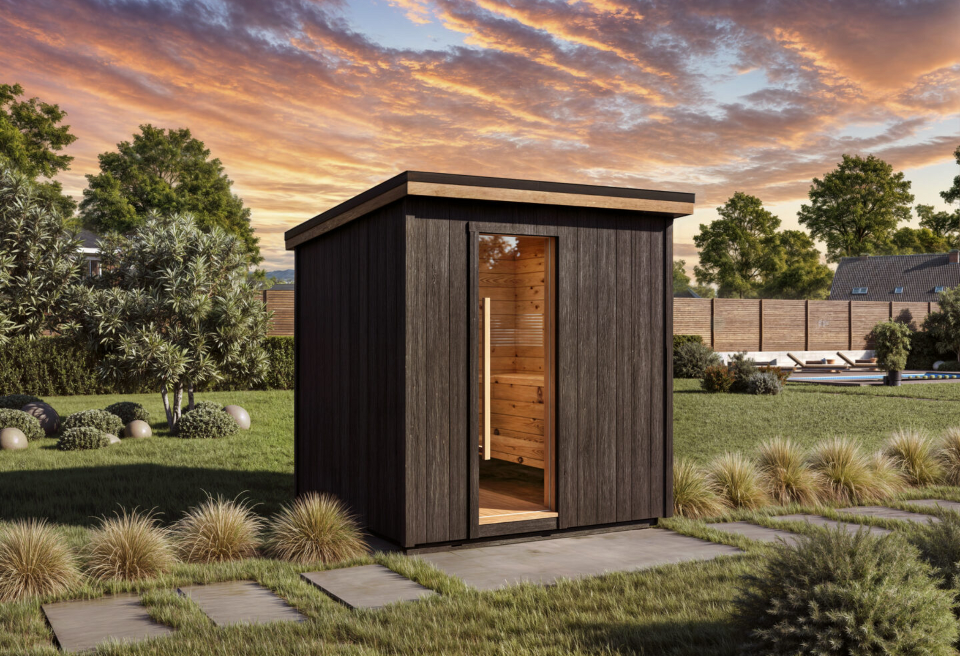 Traditional Japanese yakisugi finish delivers a deeply charred surface that’s naturally resistant to rot, pests, and UV damage—offering striking texture and long-lasting durability.